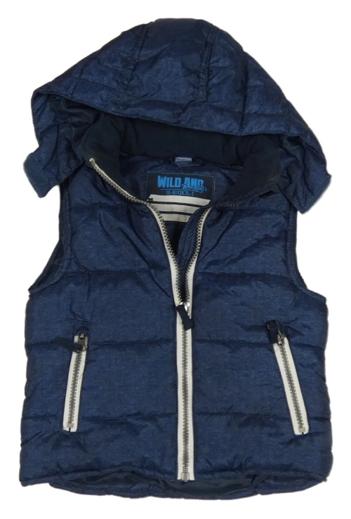 Tmavomodrá melírovaná šušťáková zateplená vesta s kapucňou Dopodopo