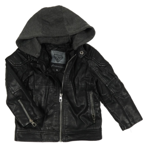 Čierna koženková bunda s kapucňou C&A