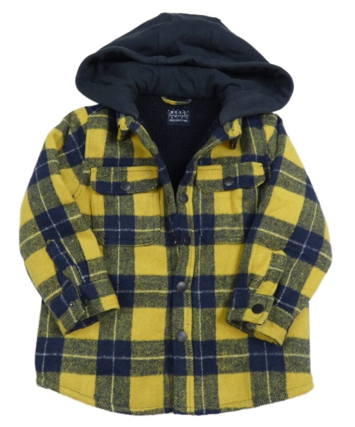 Žlto-tmavomodrá kockovaná zateplená flaušová košeľová bunda s kapucňou Next