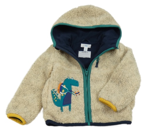 Smetanovo-sivá melírovaná huňatá podšitá bunda s dinosaurom a kapucňou M&Co
