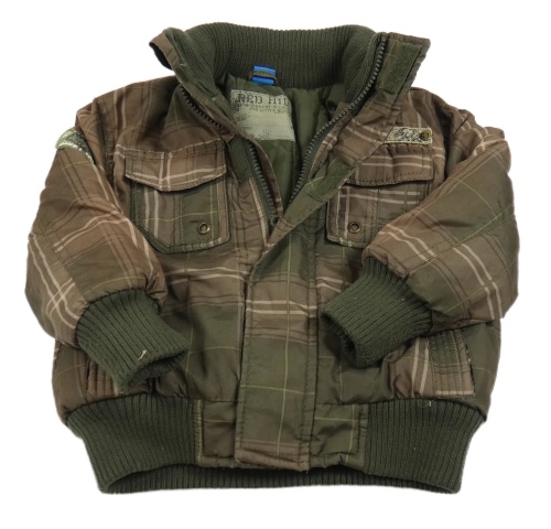 Hnedo-kakiá kockovaná šušťáková zimná bunda DopoDopo