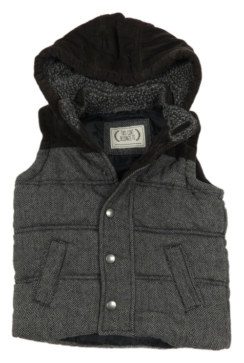 Čierno-sivo-hnedá vzorovaná vlněno/manšestrová zateplená vesta s kapucňou M&S
