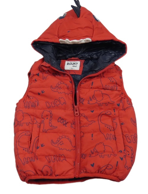Červená šušťáková zateplená vesta s diny a kapucňou