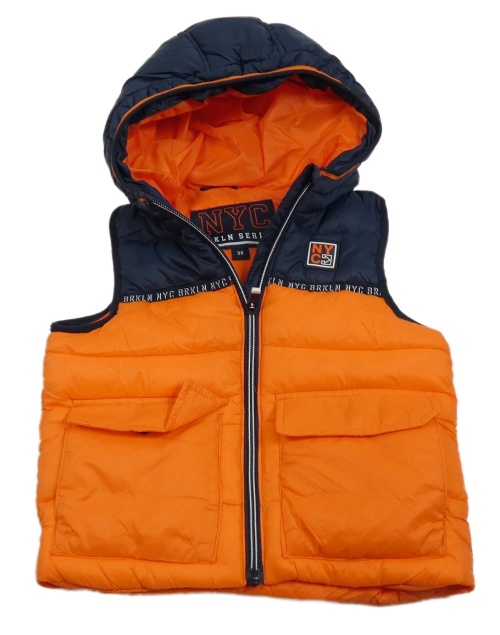 Oranžovo-tmavomodrá šušťáková prešívaná zateplená vesta s kapucňou C&A