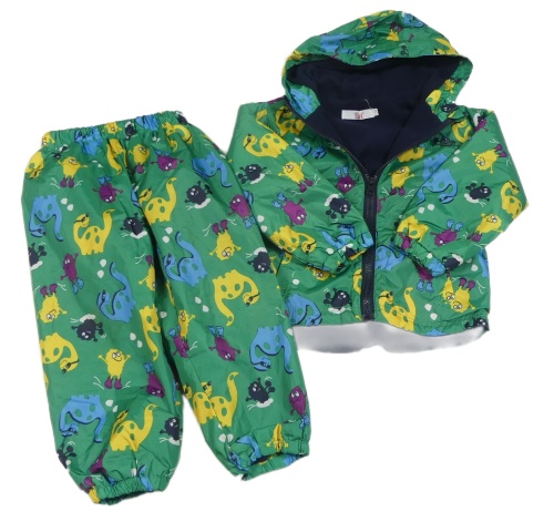 2Set - Zelená šušťáková jesenná bunda s príšerkami a dinosaurami a kapucí + nohavice