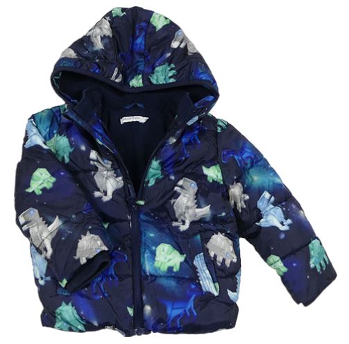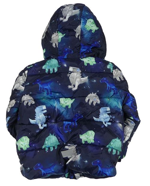 Tmavomodrá šušťáková zimná bunda s dinosaurami a kapucňou Bluezoo