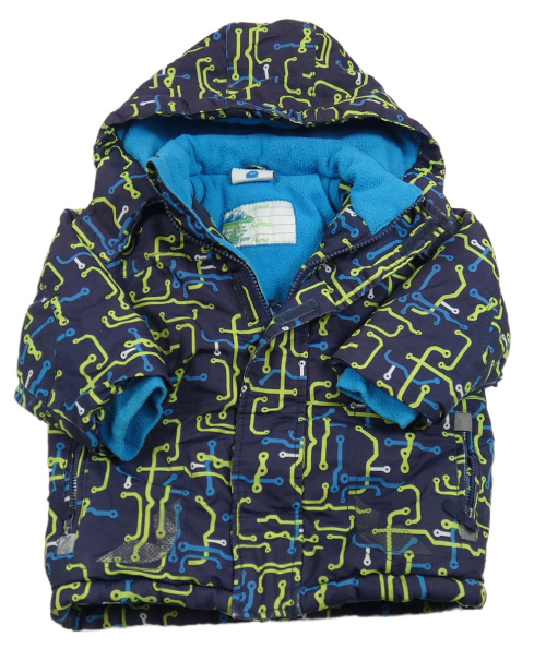 Tmavomodro-zelená vzorovaná šušťáková zimná bunda s kapucňou Topolino