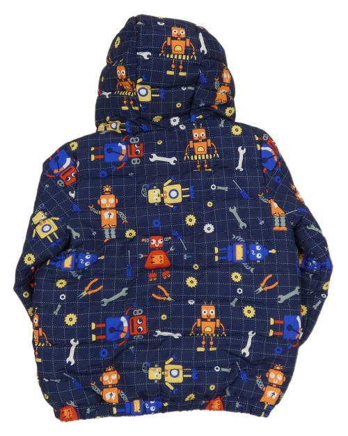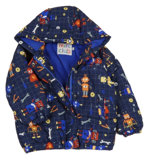 Tmavomodrá kockovaná šušťáková zimná bunda s robotmi a kapucňou Miniclub