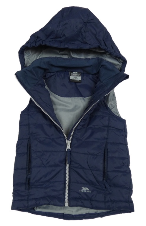 Tmavomodrá šušťáková zateplená funkčná vesta s kapucňou Trespass