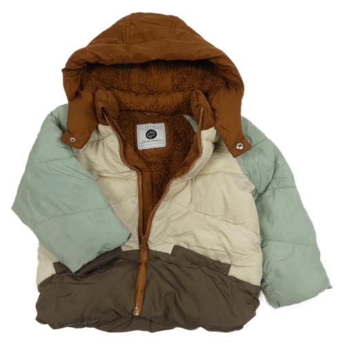Hnedo-béžovo-modrá šušťáková zimná bunda s kapucňou Tu