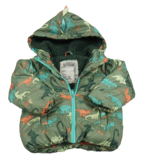 Khaki šušťáková zimná bunda s dinosaurami a kapucňou M&S