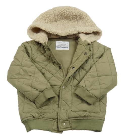 Khaki prošívaná šusťáková zateplená s huňatou kapucňou Primark