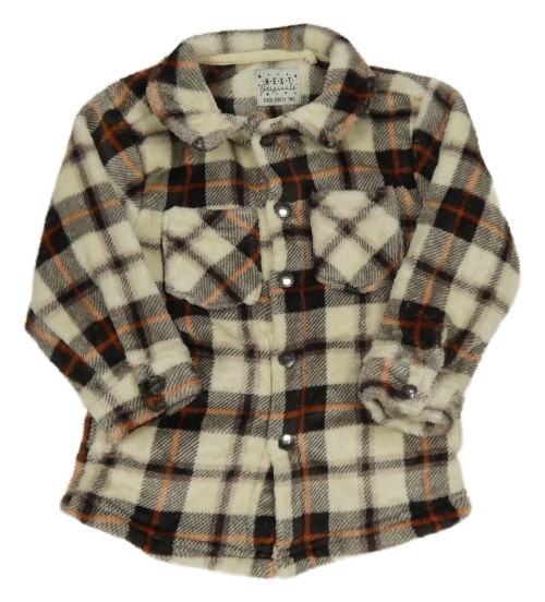 Béžovo-hnedo-oranžová kockovaná chlpatá košeľová bunda Next