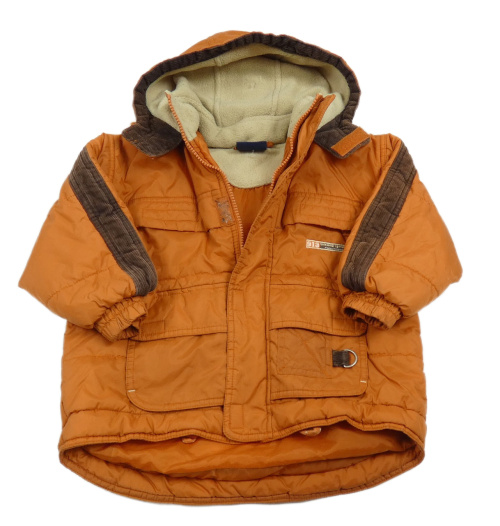 Tehlová šušťáková zateplená bunda s nášivkou a kapucňou