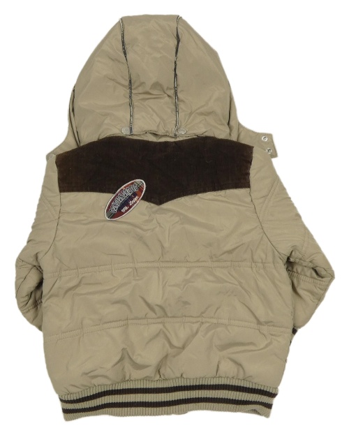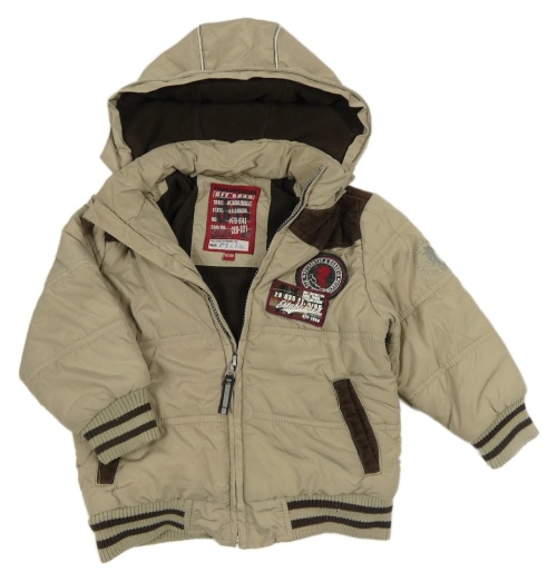 Béžovo-hnedá šušťáková zateplená bunda s nášivkami a kapucňou