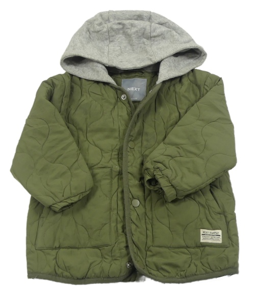 Khaki prešívaná šušťáková zateplená bunda s nášivkou a kapucňou Next