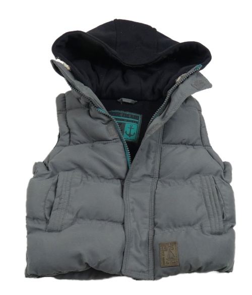 Sivo-tmavomodrá šušťáková zateplená vesta s teplákovou kapucňou Rebel