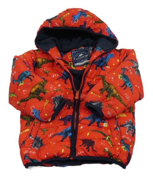Červená šušťáková zimná bunda s dinosaurami a kapucňou George