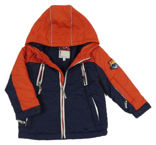 Červeno-tmavomodrá šušťáková zimná bunda s kapucňou Vertbaudet