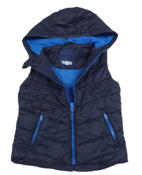 Tmavomodrá prešívaná šušťáková zateplená vesta s kapucňou URBAN RASCALS