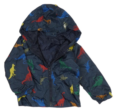 Tmavomodrá šušťáková jarná bunda s dinosaurami a kapucňou