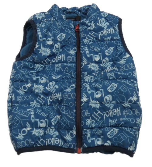 Tmavomodrá šušťáková prešívaná zateplená vesta s nápismi Name it