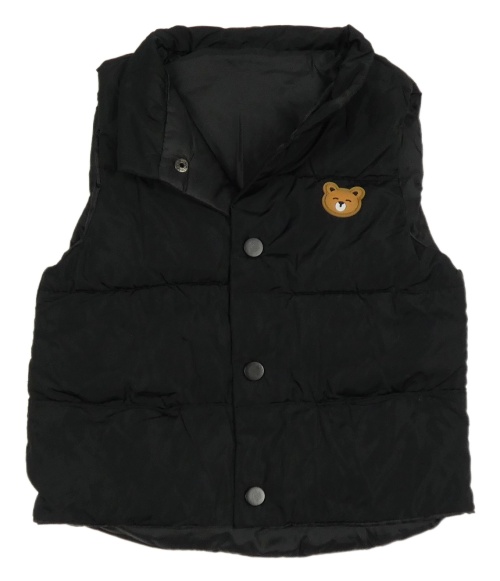 Čierna prešívaná šušťáková zateplená vesta s medvedíkom