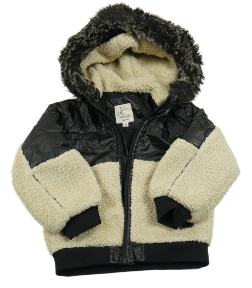 Béžovo-čierna huňato/šusťáková podšitá bunda