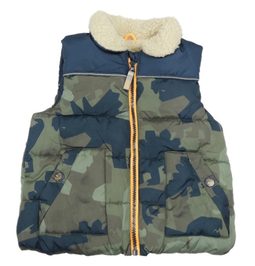 Kaki-modrá army šušťáková zateplená vesta s dinosaurami F&F