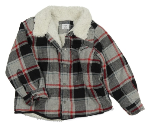 Sivo-čierno-červená kockovaná zateplená košeľová bunda Polarn O. Pyret