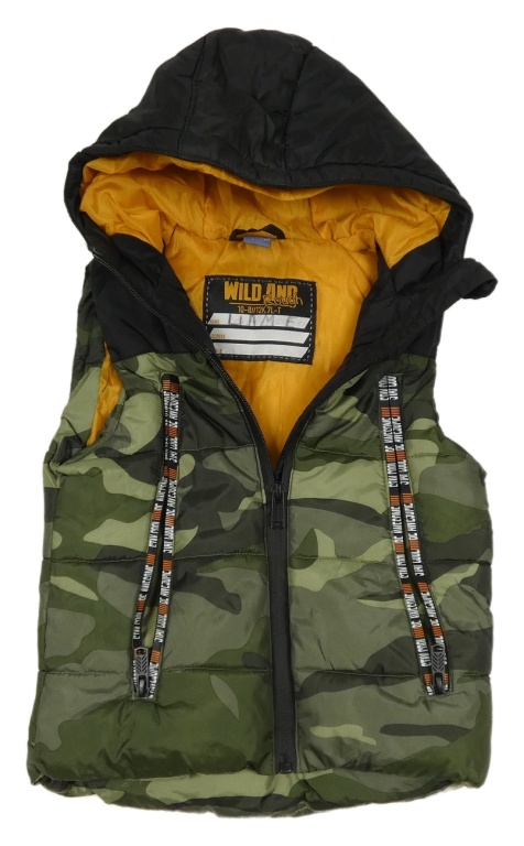 Černo-khaki army šušťáková zateplená vesta s nápismi a kapucňou Dopodopo