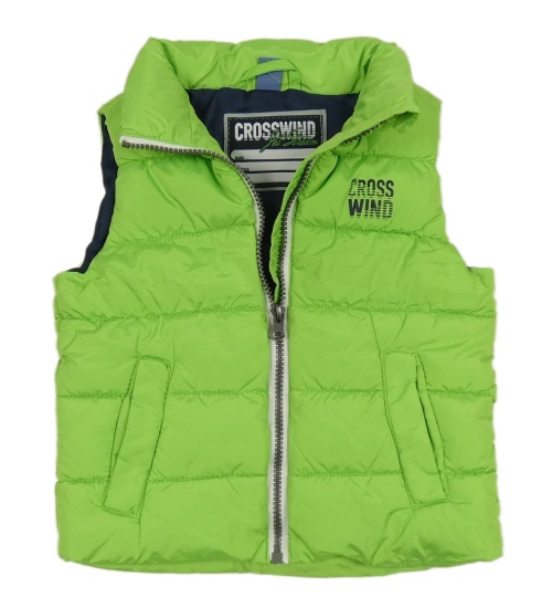 Zelená šušťáková zateplená vesta s nápisom Dopodopo