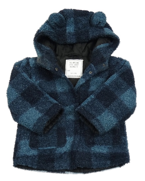Tmavomodrá kockovaná huňatá zateplená bunda s kapucňou Matalan