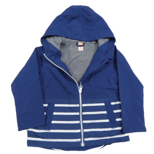Tmavomodro-biela šušťáková jarná bunda s pruhmi a kapucňou