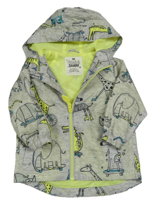 Svetlosivá melírovaná šušťáková jarná bunda so zvieratkami a kapucňou F&F