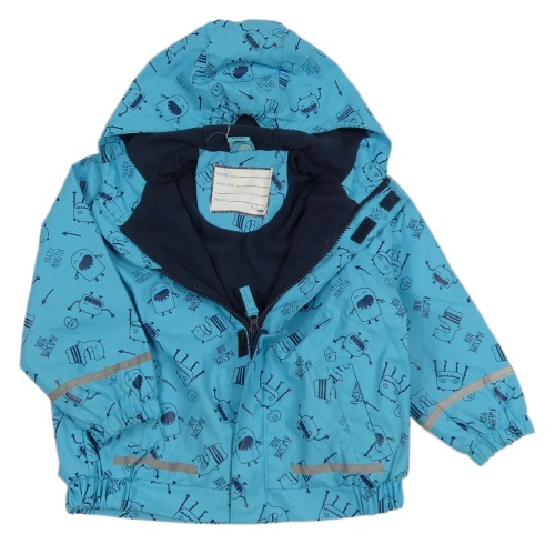 Azurová nepromokavá jarná bunda s príšerkami a kapucňou Kiki&Koko