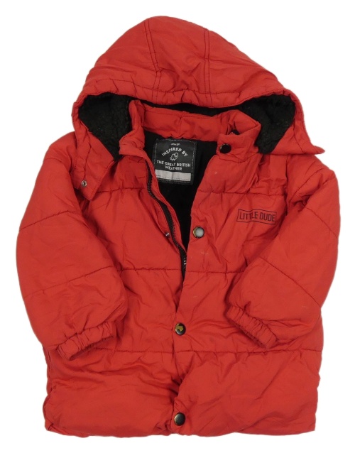 Červená prešívaná šušťáková zimná bunda s nápisom a kapucňou George