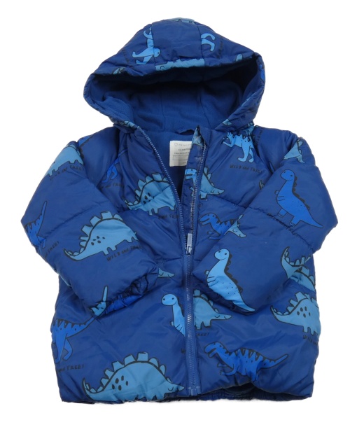 Tmavomodrá šušťáková zimná bunda s dinosaury kapucňou Primark