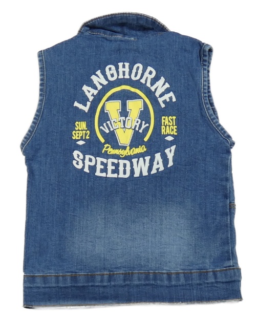 Modrá rifľová vesta s nápismi