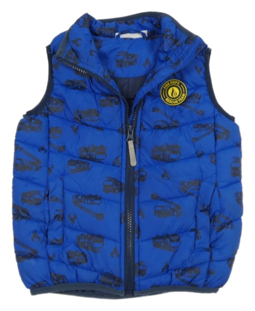 Cobaltovoě modrá šušťáková zateplená vesta s hasiči