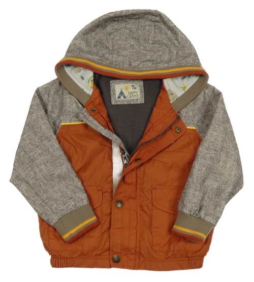 Béžovo-oranžová šušťáková lehce zateplená bunda s kapucňou Tu