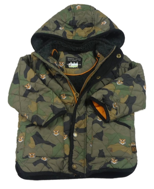 • Kaki-čierna army prešívaná šušťáková zateplená bunda s tigrami a kapucňou Next