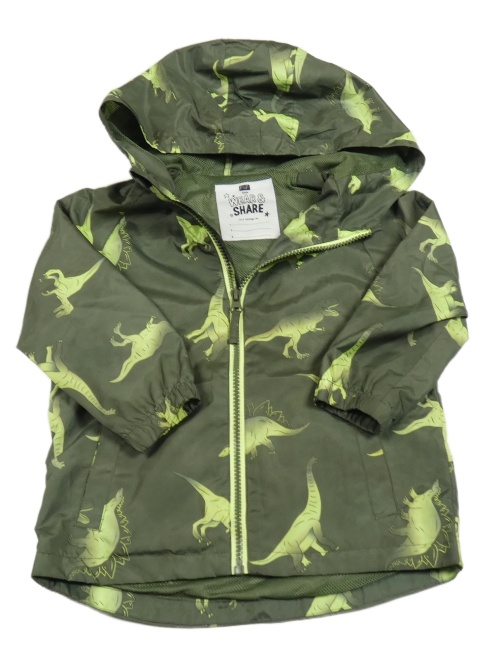 Khaki šušťáková jarná bunda s dinosaurami a kapucňou F&F