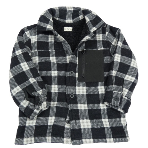Čierno-biela kockovaná fleecová košeľová zateplená bunda F&F
