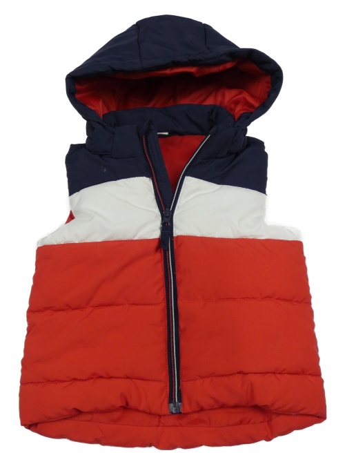 Červeno-bielo-tmavomodrá šušťáková zateplená vesta s kapucňou H&M