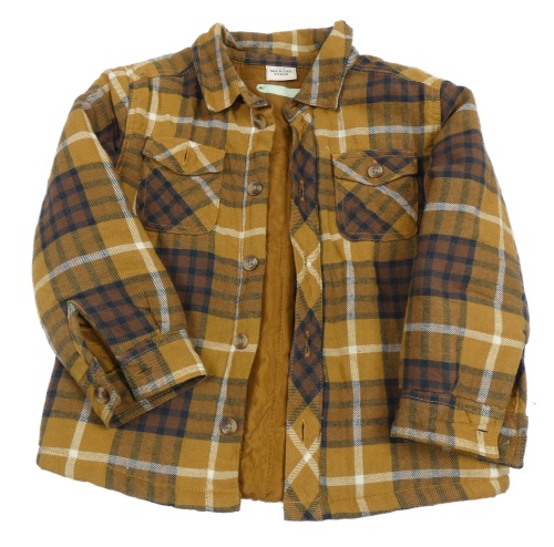 Medovo-bielo-tmavomodrá kockovaná zateplená košeľová bunda