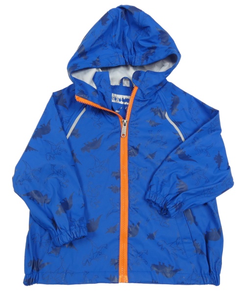 Modrá nepromokavá bunda s dinosaurami a kapucňou C&A