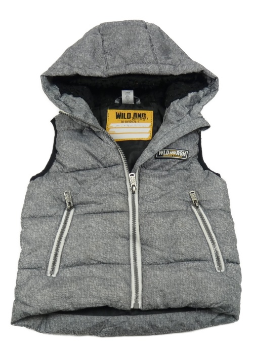 Sivá melírovaná šušťáková zateplená vesta s nápisom a kapucňou Dopodopo
