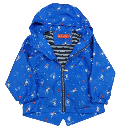 Modrá šušťáková jarná bunda s vesmírom a kapucňou