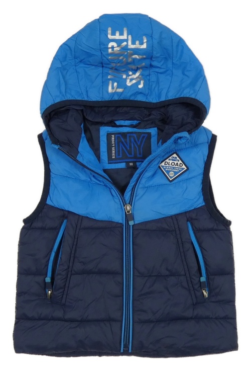 Tmavomodro-modrá šušťáková prešívaná zateplená vesta s kapucňou C&A